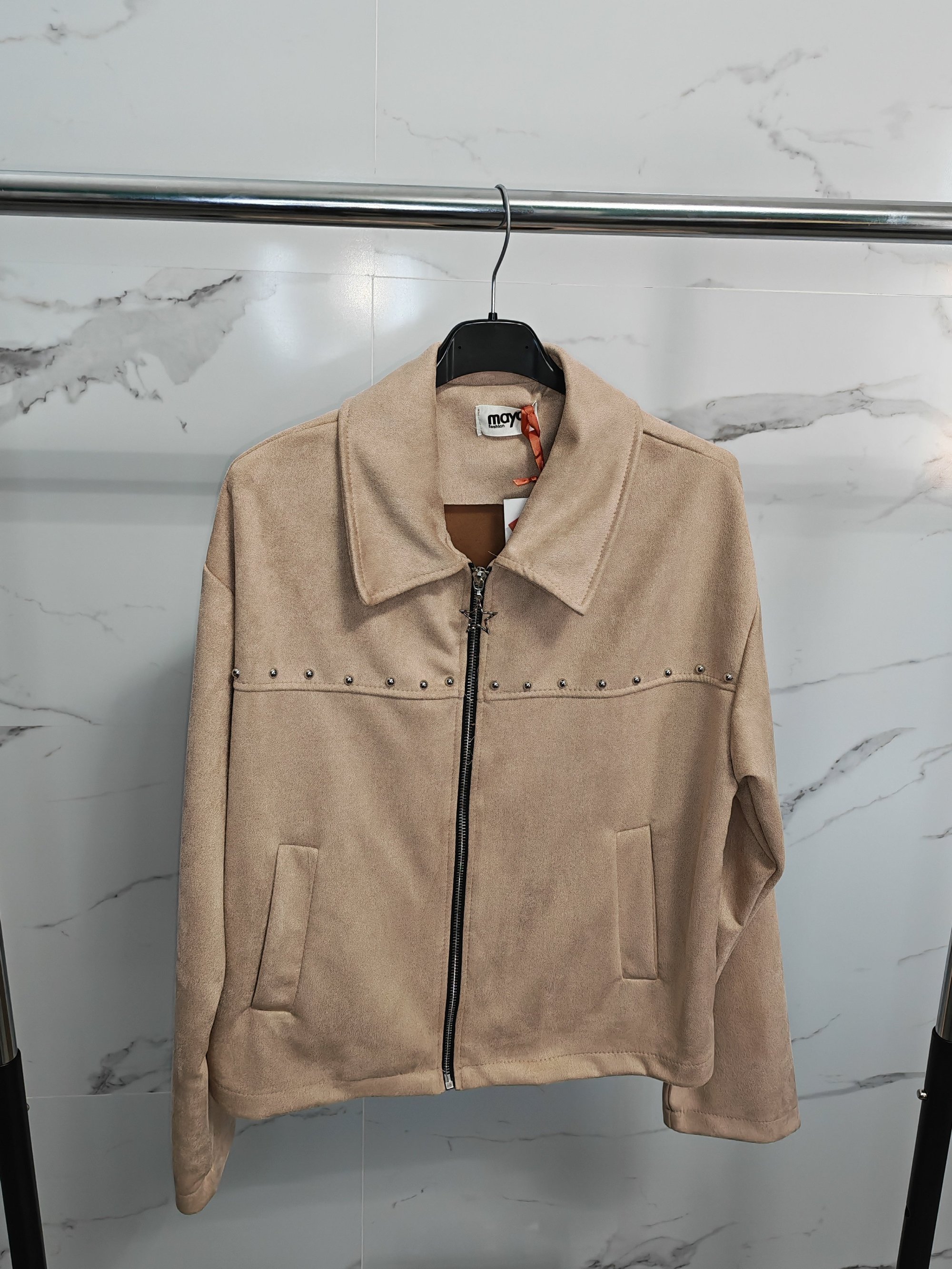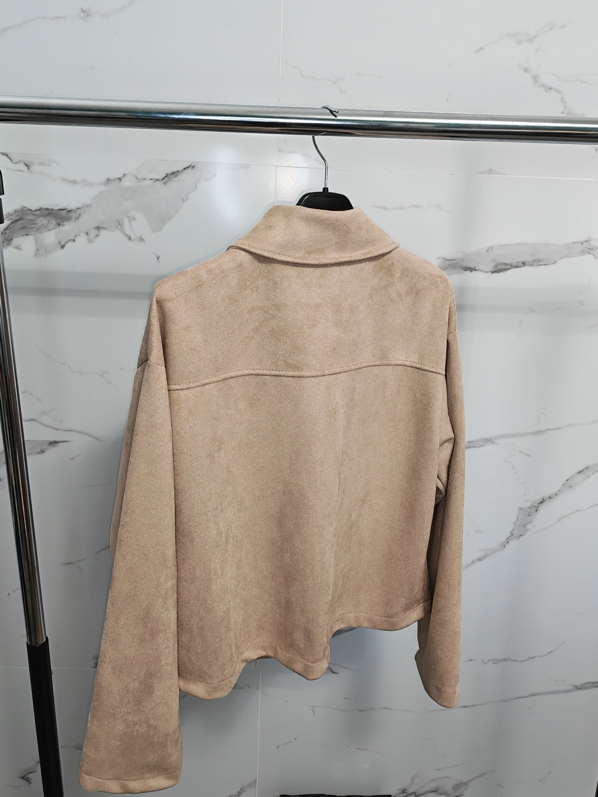 Bellissima giacca corta dallo stile moderno e versatile, realizzata in morbido tessuto effetto camoscio.