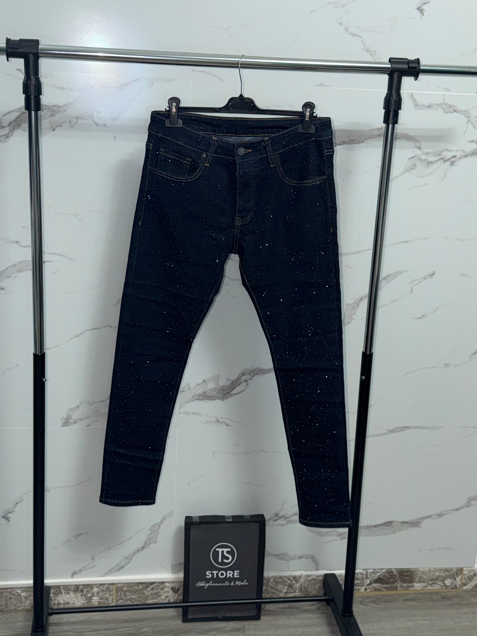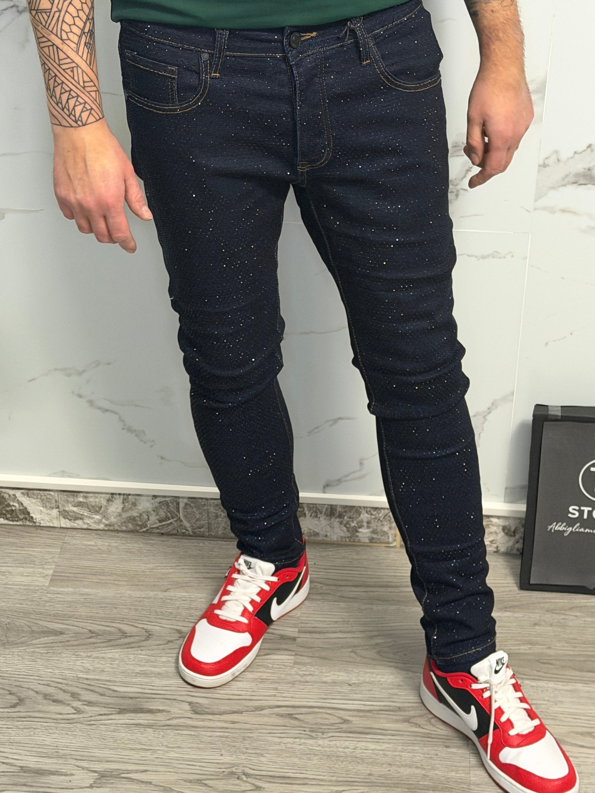 Jeans slim fit in denim scuro con leggera lavorazione effetto puntinato, dal look moderno e ricercato.Vestibilità aderente che valorizza la silhouette senza rinunciare al comfort.Tessuto resistente e confortevole, ideale per outfit casual e streetwear.Facile da abbinare con t-shirt, felpe o sneakers per uno stile quotidiano curato.
